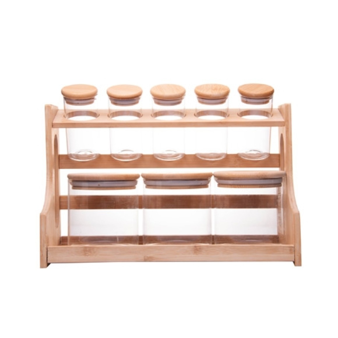 20695 CONJ 8 POTES COM TAMPA HERMETICA E RACK EM BAMBU 500ML/120ML