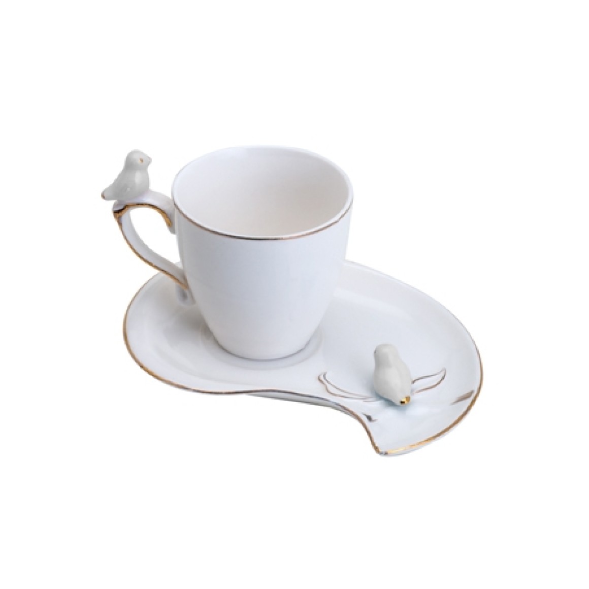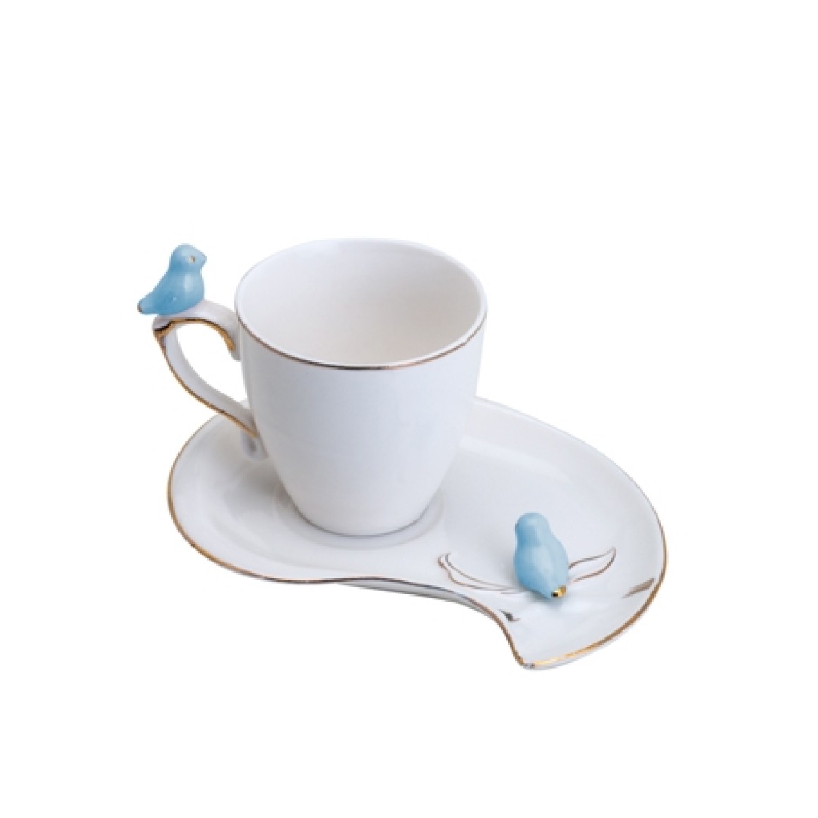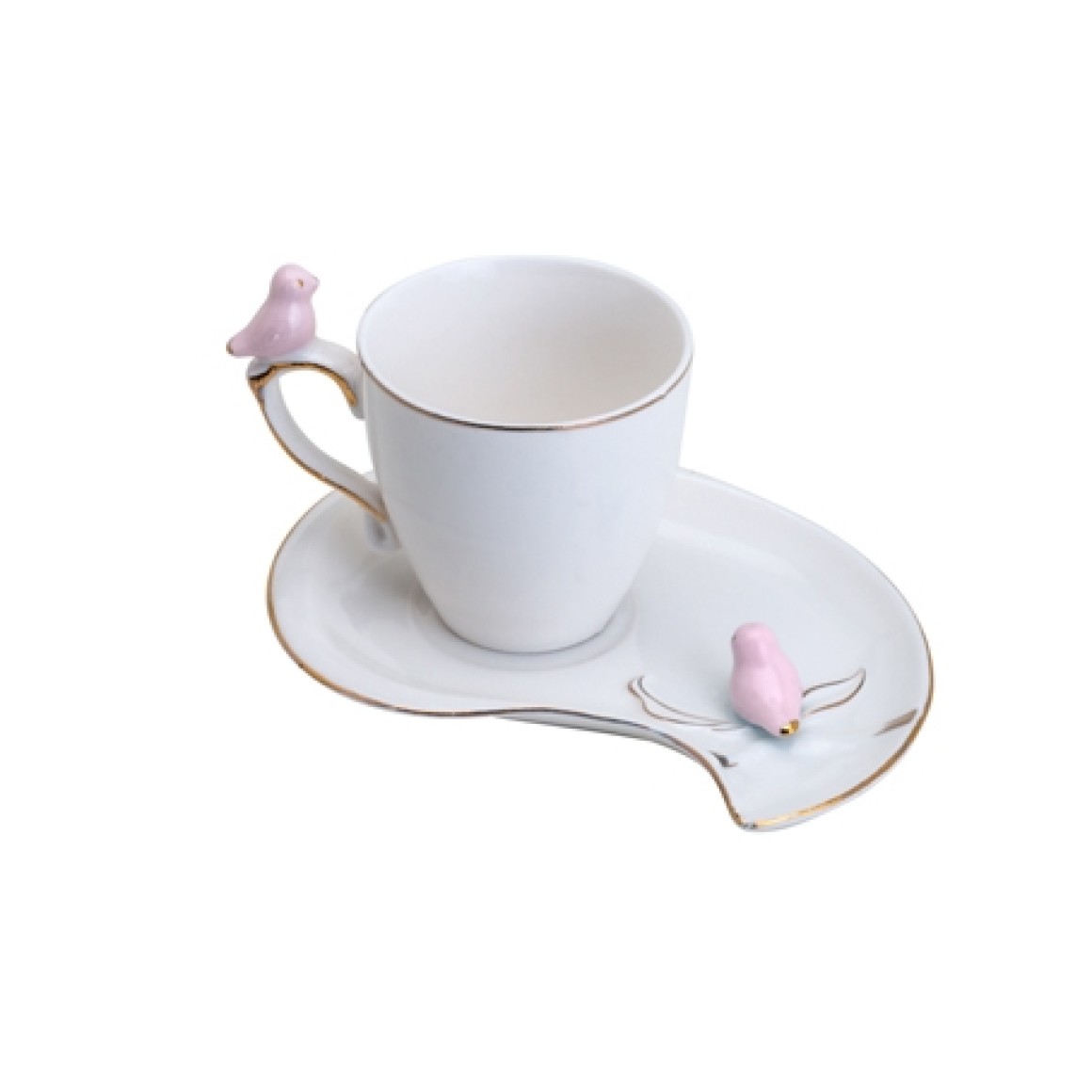 Conjunto Xícaras Café Cute Bird Desing Plate Colorido 90ml